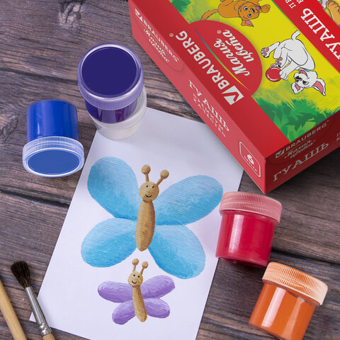 Школьная гуашь BRAUBERG идеально подходит для творчества и декоративно-оформительских работ. Хорошо наносится на бумагу, картон, дерево, стекло, керамику.