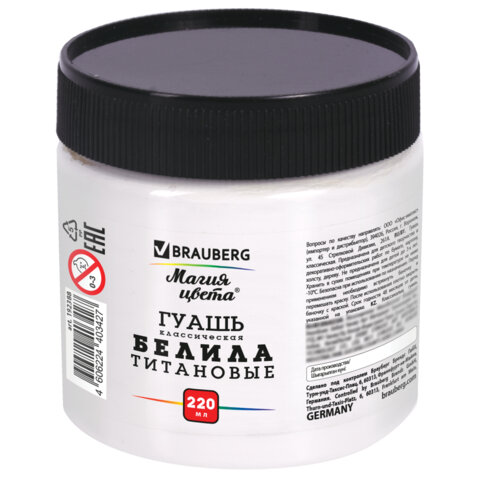 Гуашь классическая BRAUBERG "МАГИЯ ЦВЕТА" 1 шт., 220 мл, БЕЛИЛА ТИТАНОВЫЕ, 192388