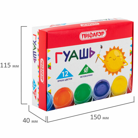 Гуашь ПИФАГОР "СОЛНЫШКО" отлично подойдет для школьников младших и средних классов, начинающих свой творческий путь на уроках рисования. Хорошо наносится на бумагу, картон, дерево, стекло, керамику.