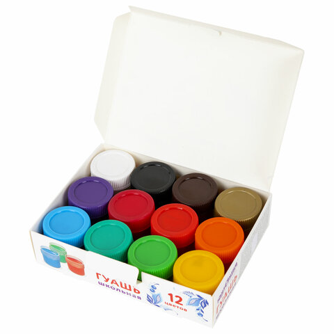 Гуашь ЮНЛАНДИЯ "ШКОЛЬНАЯ", 12 цветов по 17,5 мл, 192384