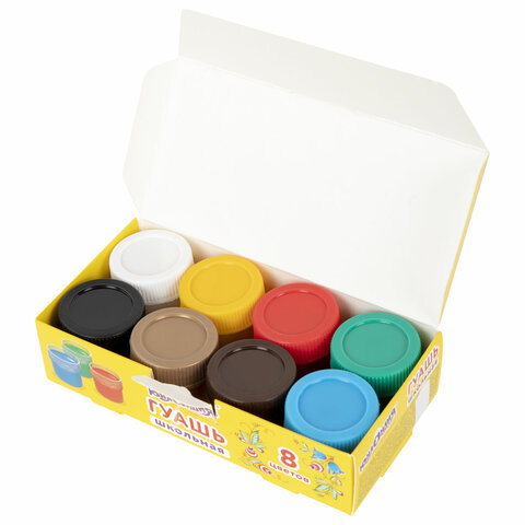 Гуашь ЮНЛАНДИЯ "ШКОЛЬНАЯ", 8 цветов по 17,5 мл, 192383