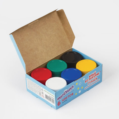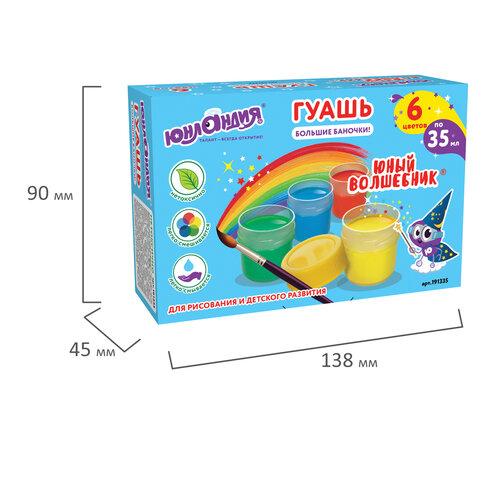 Гуашь ЮНЛАНДИЯ "ЮНЫЙ ВОЛШЕБНИК", 6 цветов по 35 мл, БОЛЬШИЕ БАНОЧКИ, высшее качество, 191335