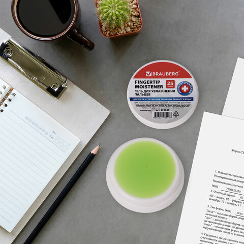 Гель для увлажнения пальцев BRAUBERG облегчает работу при подсчете денег, перелистывании документов, бюллетеней, подписных листов.