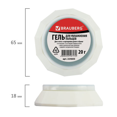 Гель для увлажнения пальцев BRAUBERG, 20 г (Малайзия), нежирный, нетоксичный, 224603