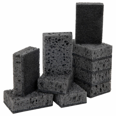 Губки для посуды 9,8х6,6х3 см, КОМПЛЕКТ 10 шт., SQUARE BLACK, КРУПНОПОРИСТЫЙ поролон с абразивным слоем, LAIMA, 608648