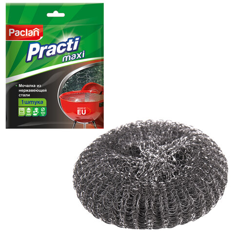 Губка (мочалка) металлическая, сетчатая, 38 г, БОЛЬШАЯ, для посуды, гриля, плиты, PACLAN "Practi"