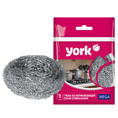 Губка (мочалка) металлическая, спиральная МЕГА для посуды, гриля, плиты YORK подходит для деликатного удаления сильных загрязнений с посуды. Не подходит для тефлона. Подходит для изделий из стали, чугуна, меди и алюминия, противней из стекла.