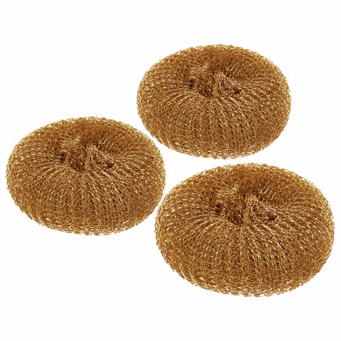 Губки (мочалки) медные, сетчатые, 3х15 г, КОМПЛЕКТ 3 шт., для посуды, гриля, плиты, LAIMA, 603104