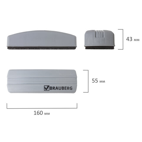 Стиратель BRAUBERG предназначен для сухого стирания надписей, сделанных маркером для белых досок.