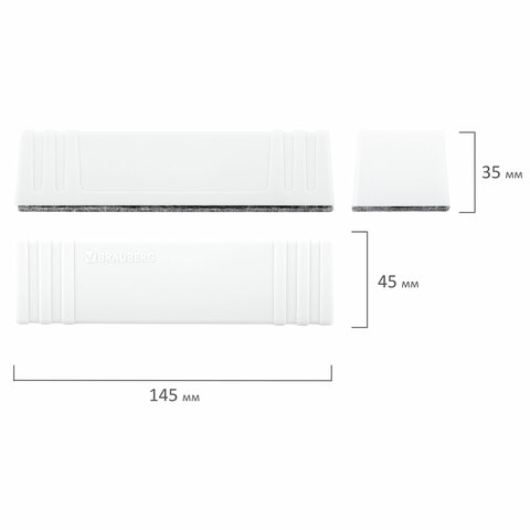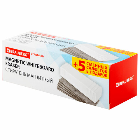 Магнитный стиратель BRAUBERG "Standard" со сменными салфетками предназначен для стирания сухим способом надписей, выполненных маркером, с белых досок.