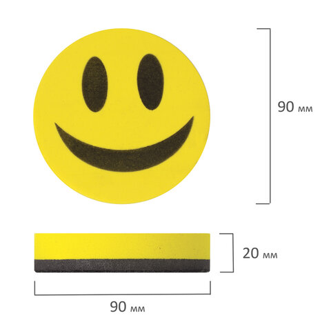 Стиратель магнитный для магнитно-маркерной доски, круглый, диаметр 90 мм, "Смайлик", STAFF "Basic", 236751