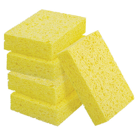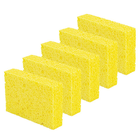 Губки для посуды 110х70х20 мм, ЦЕЛЛЮЛОЗНЫЕ, КОМПЛЕКТ 5 штук, желтые, LAIMA, 700259