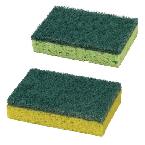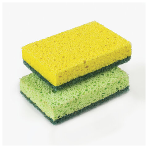 Губки для посуды 9,5х6,5х2 см, КОМПЛЕКТ 2 шт., ЦЕЛЛЮЛОЗНЫЕ (губчатые) с АБРАЗИВОМ, LAIMA К1106, 605487