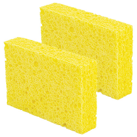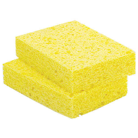 Губки для посуды 95х65х20 мм, ЦЕЛЛЮЛОЗНЫЕ, КОМПЛЕКТ 2 штуки, желтые, LAIMA, 700255