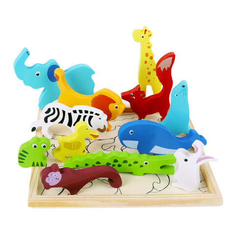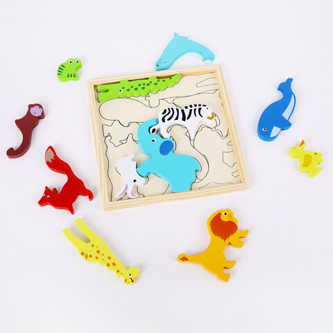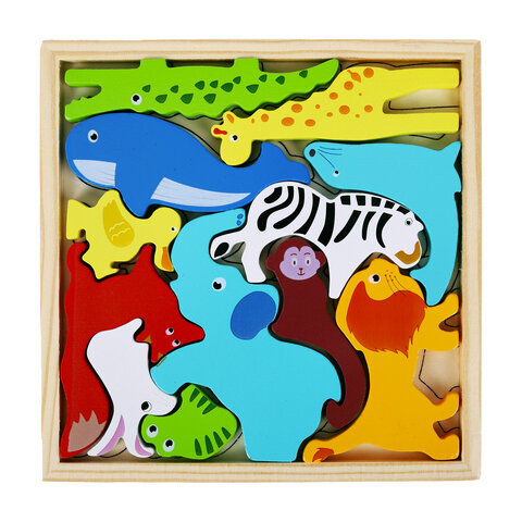 Пазл деревянный развивающий для детей "Дикие животные", 17х17 см, BRAUBERG KIDS, 665250