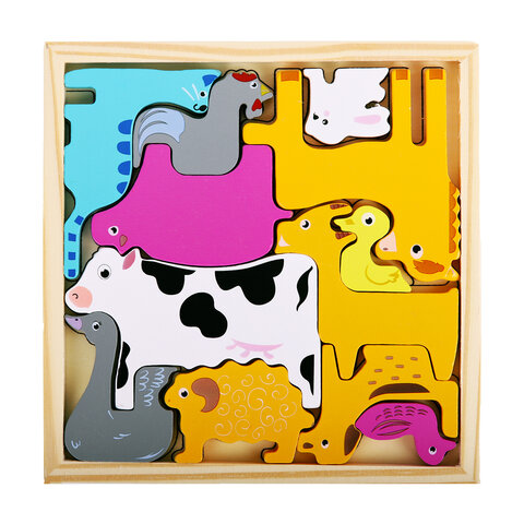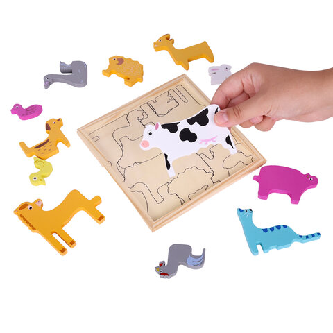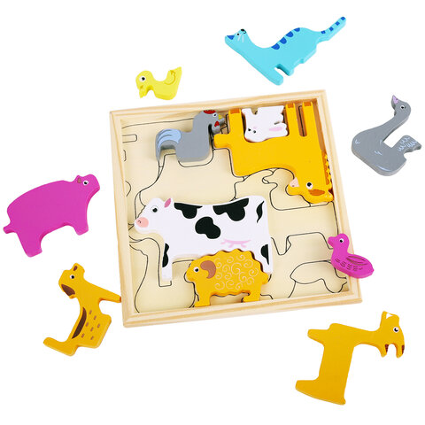 Пазл деревянный развивающий для детей "Домашние животные", 17х17 см, BRAUBERG KIDS, 665251