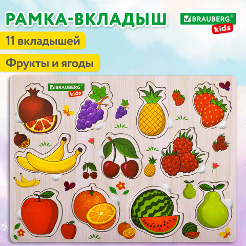 Рамка-вкладыш деревянная развивающая "Фрукты и ягоды", 22х30 см, BRAUBERG KIDS, 665254