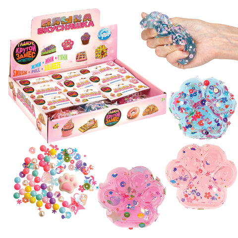 Игрушка-антистресс "Крутой замес. Няшка-вкусняшка МАРМЕЛАПКА" 1TOY – это очаровательные и яркие игрушки-жмяки, украшенные разнообразными присыпками, шариками и бусинами.