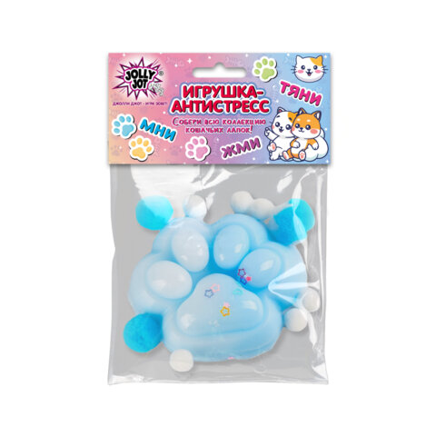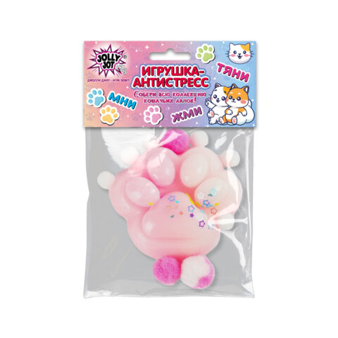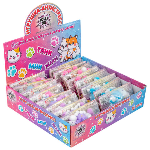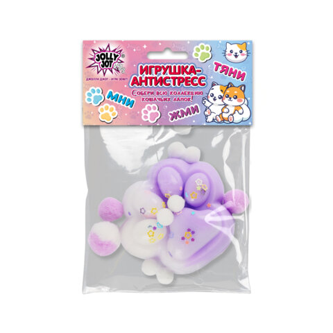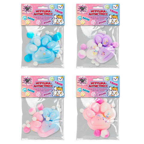 Игрушка-антистресс "ЦВЕТНАЯ КОШАЧЬЯ ЛАПКА С ПОМПОНАМИ", 7х6 см, ассорти 4 вида, дисплей, JOLLY JOT (ДЖОЛЛИ ДЖОТ), 665770