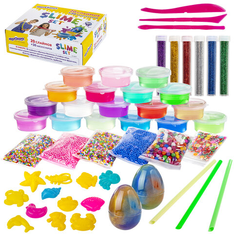 Набор слаймов 20 цветов, 30 аксессуаров, в колорбоксе, ЮНЛАНДИЯ, 663775