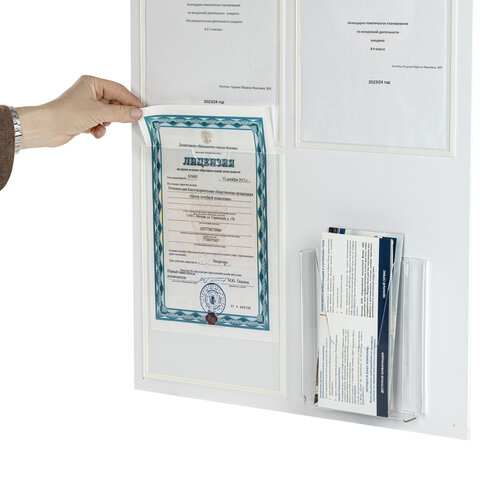 Доска-стенд "Информация" 52х78 см, 3 плоских кармана А4 + объемный карман А5, BRAUBERG, 291011