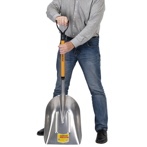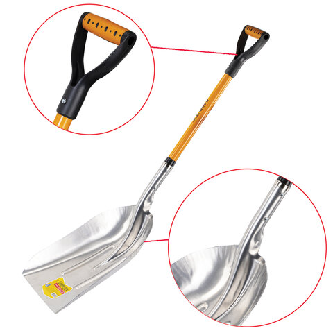 Лопата алюминиевая для снега 37х48 см, ОБЩАЯ ДЛИНА 120 см, черенок стекловолокно, V-ручка, RABBITEX (РАББИТЕКС) "FIBERGLASS", 700486