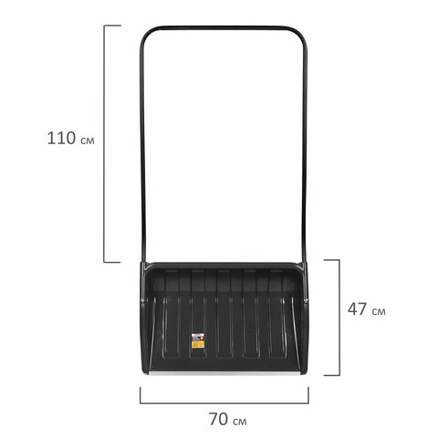 Лопата снеговая СКРЕПЕР 70х47 см пластиковый ЧЕРНЫЙ, алюминиевая планка, рукоятка 110 см, СУПЕРПРОЧНЫЙ, ГРАНДМАСТЕР, 700342