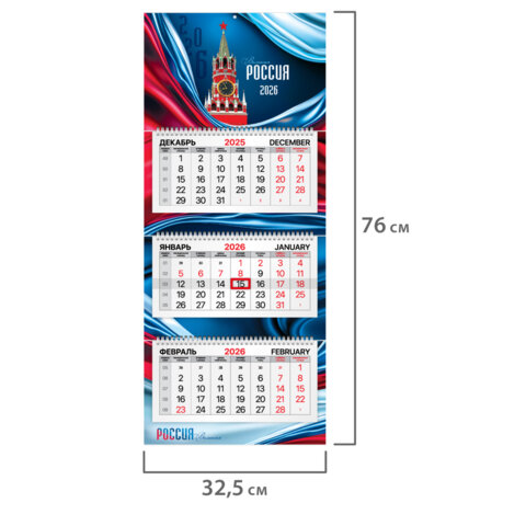 Календарь квартальный 2026 г., 3 блока, 3 гребня, бегунок, мелованная бумага, BRAUBERG PREMIUM, "Россия", 116828