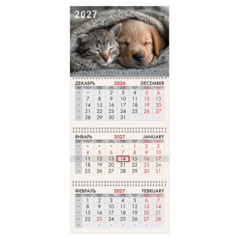 Календарь квартальный 2027г, 3 блока 3 гребня, бегунок, офсет, BRAUBERG, "Лучшие друзья", 118261