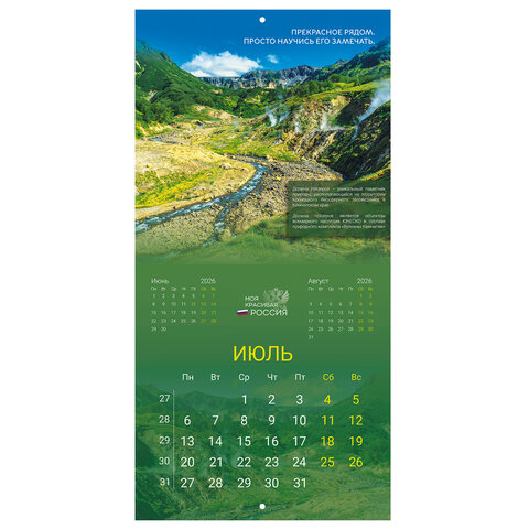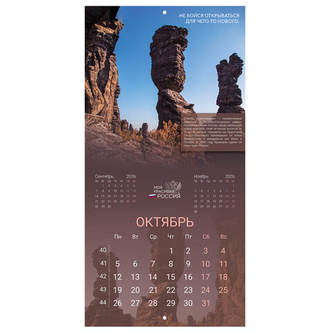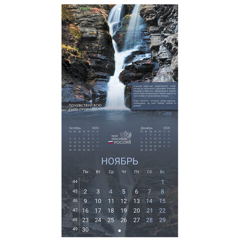 Календарь настенный перекидной 2026 г., BRAUBERG, 12 листов, 28,5х28,5 см, "Природа России", 116926