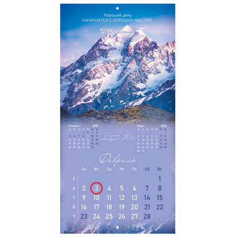 Календарь настенный перекидной 2026 г., BRAUBERG, 12 листов, 28,5х28,5 см, "Твоя вселенная", 116924