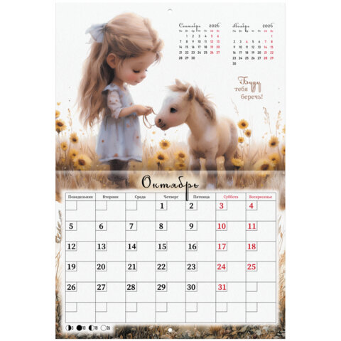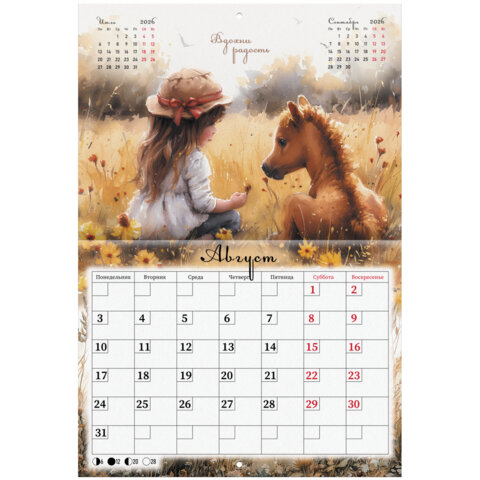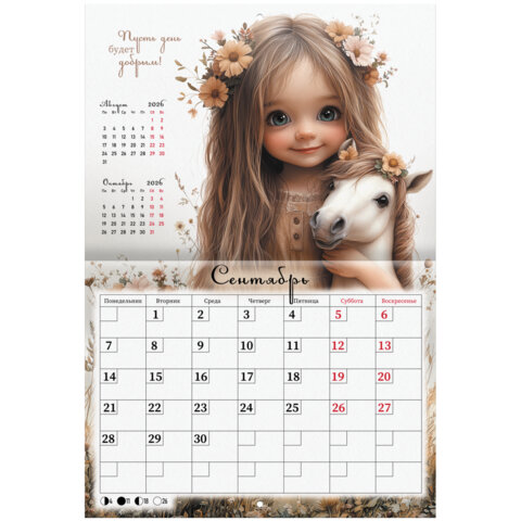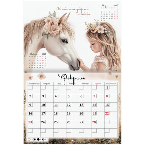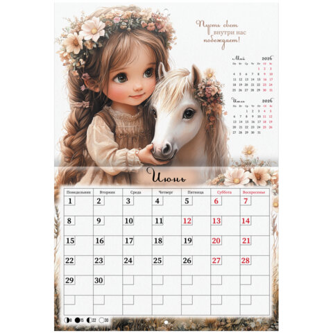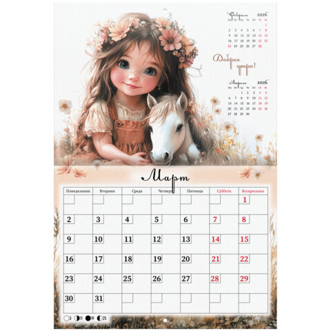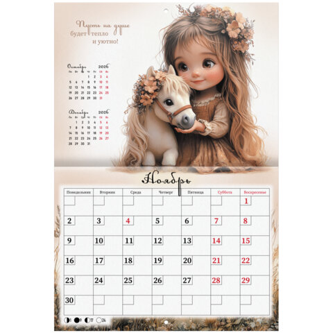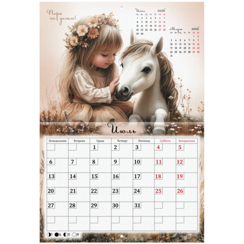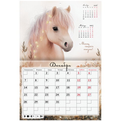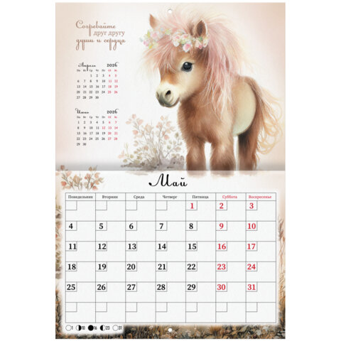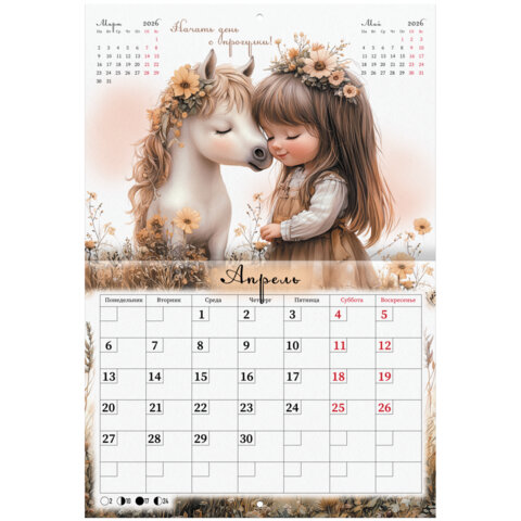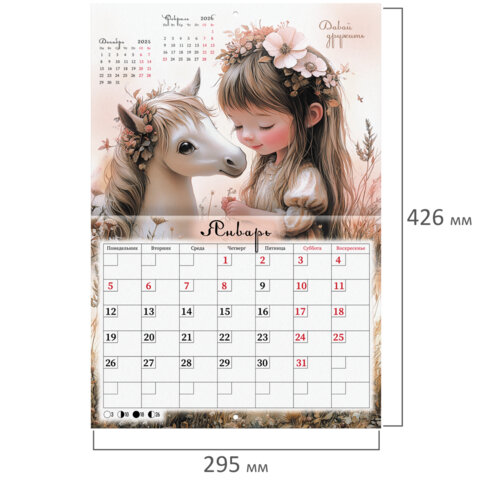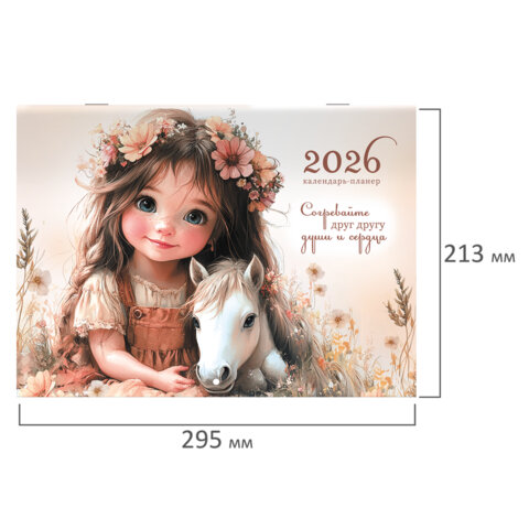 Календарь-планер настенный перекидной на 2026 г., BRAUBERG, 12 листов, 29,5х21,3 см, "Sweet pony", 116948