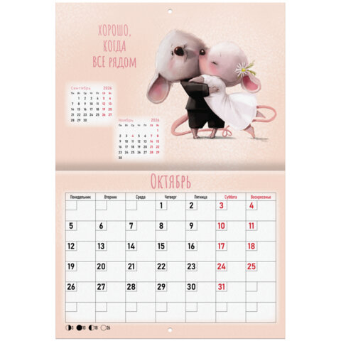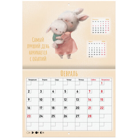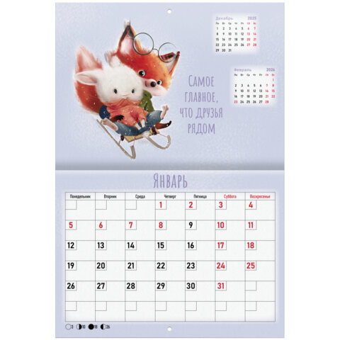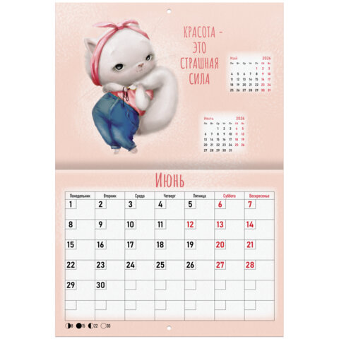 Календарь-планер настенный перекидной на 2026 г., BRAUBERG, 12 листов, 29,5х21,3 см, "Мотиваторы", 116952