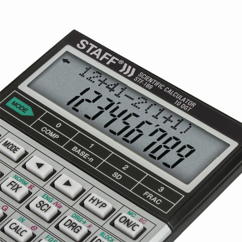 Инженерный калькулятор STAFF STF-169 выполняет все основные вычисления, которые понадобятся школьникам и студентам на занятиях по физике, химии, биологии и географии. В памяти калькулятора постоянно содержатся 38 основных формул из школьной программы.