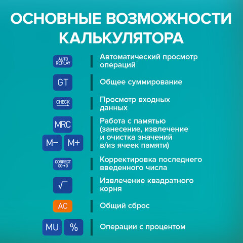 Карманный калькулятор BRAUBERG CX-102C-BU – компактный и надежный помощник в работе и учебе. Его удобно использовать в офисе, школе и в быту.