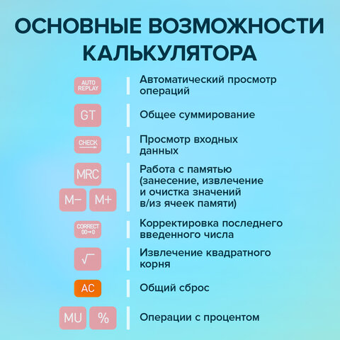 Карманный калькулятор BRAUBERG CX-102C-PK – компактный и надежный помощник в работе и учебе. Его удобно использовать в офисе, школе и в быту.
