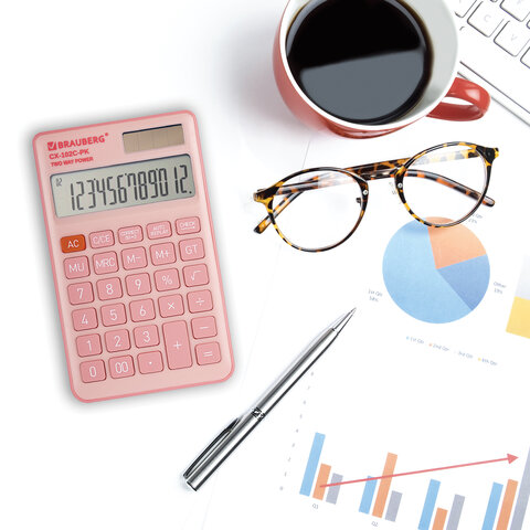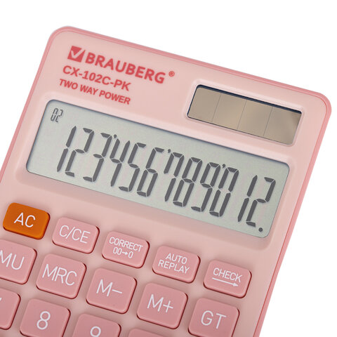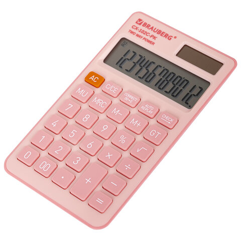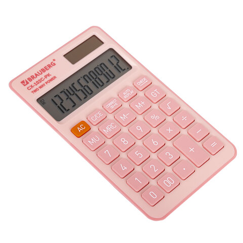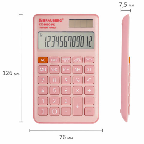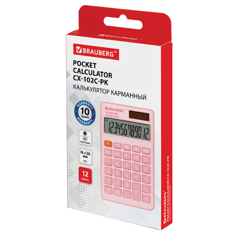 Калькулятор карманный BRAUBERG CX-102C-PK (76x126 мм), 12 разрядов, двойное питание, РОЗОВЫЙ, 272650