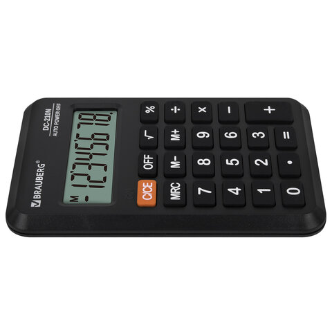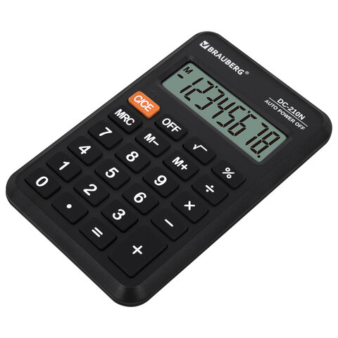 Калькулятор карманный BRAUBERG DC-210N (63х98 мм), 8 разрядов, черный, 272953