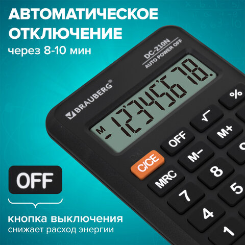 Карманный калькулятор BRAUBERG DC-210N — простой и надежный инструмент для повседневных расчетов. Легкий и компактный, он пригодится в офисе, школе или дома.