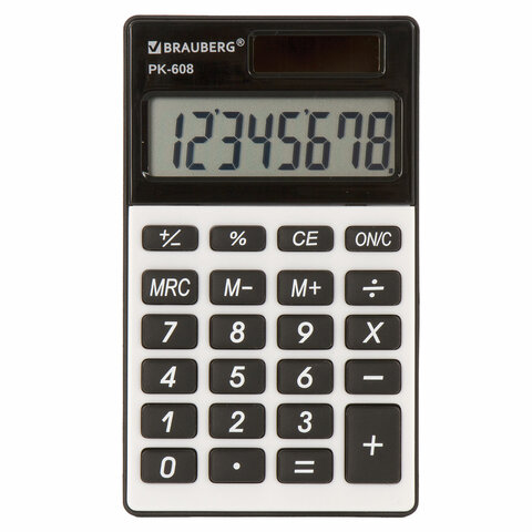 Карманный калькулятор BRAUBERG PK-608 - компактный, прочный и надежный. Его удобство оценят и взрослые и дети.