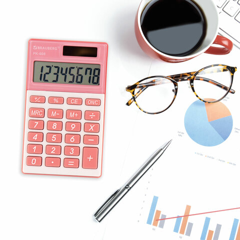 Карманный калькулятор BRAUBERG PK-608-PK - компактный, прочный и надежный. Его удобство оценят и взрослые и дети.