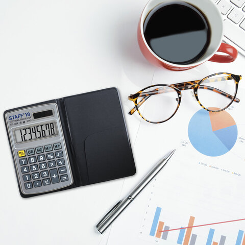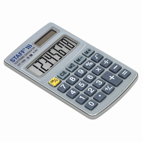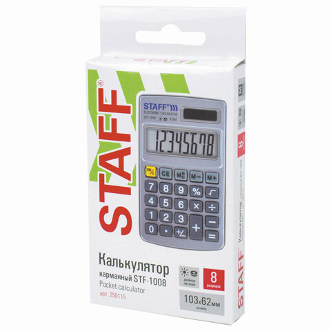 Прочный и надёжный карманный калькулятор STAFF STF-1008 поможет выполнить базовые вычисления везде, где Вам понадобится. Калькулятор легко помещается в карман и удобно лежит в руке.