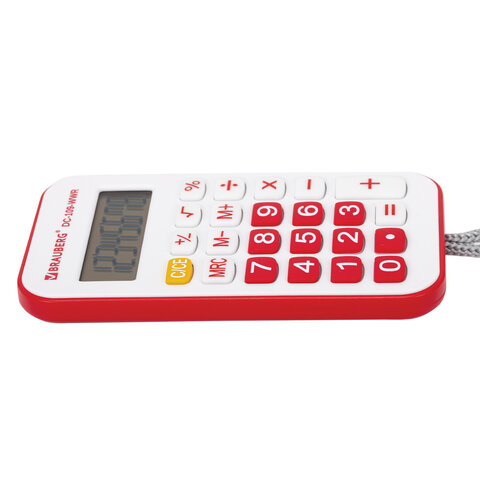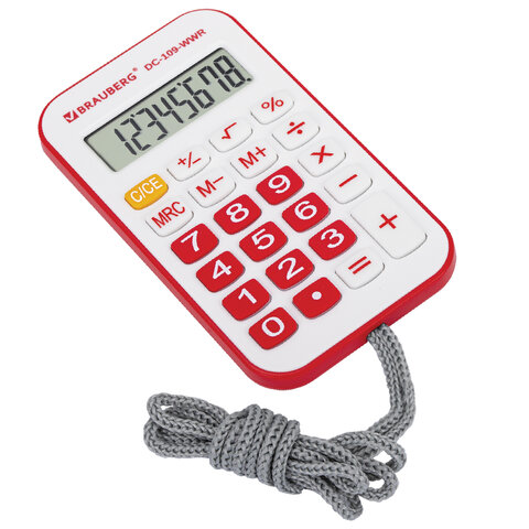 Калькулятор карманный со шнурком BRAUBERG DC-109-WWR (61x110 мм), 8 разрядов, БЕЛЫЙ/КРАСНЫЙ, 272644