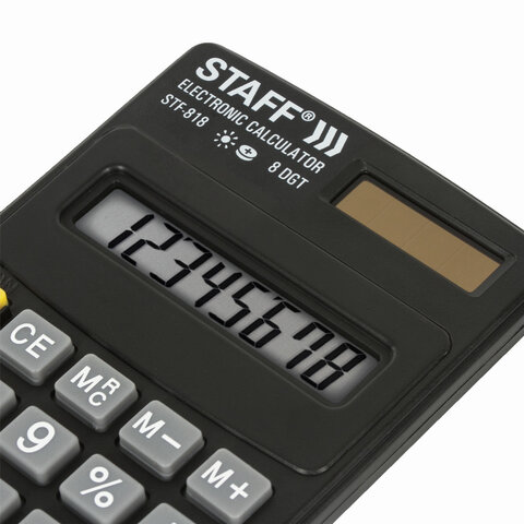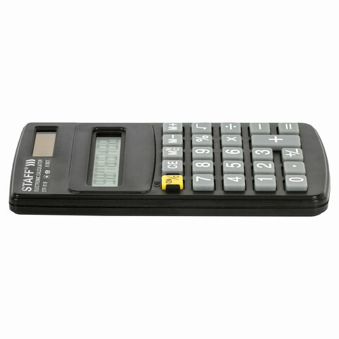Простой и надежный карманный калькулятор STAFF STF-818 поможет выполнить базовые вычисления везде, где Вам понадобится. Калькулятор легко помещается в карман и удобно лежит в руке.