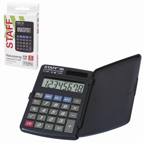 Калькулятор карманный STAFF STF-899 (117х74 мм), 8 разрядов, двойное питание, 250144