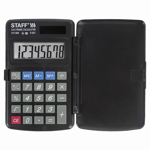 Простой и надежный карманный калькулятор STAFF STF-899 поможет выполнить базовые вычисления везде, где Вам понадобится. Калькулятор легко помещается в карман и удобно лежит в руке.