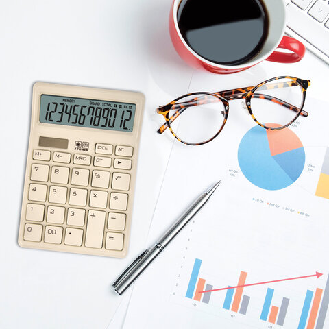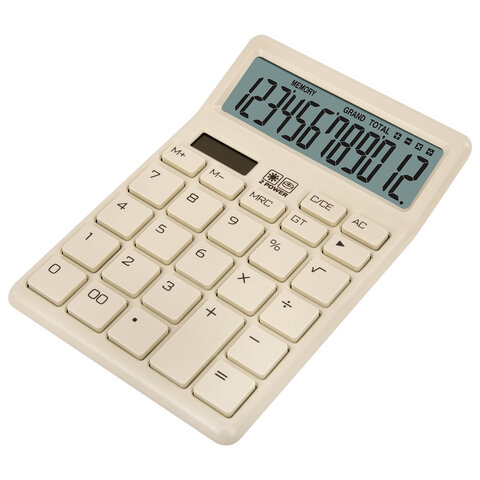 Калькулятор настольный BRAUBERG CH-12-BG (153х103 мм), 12 разрядов, двойное питание, бежевый, 272960
