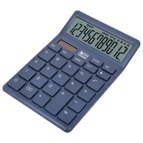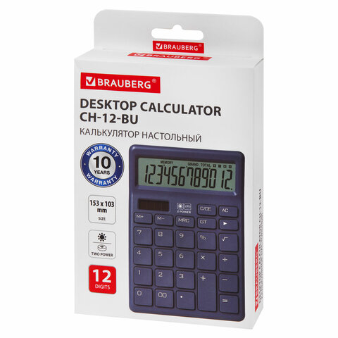 Калькулятор настольный BRAUBERG CH-12-BU (153х103 мм), 12 разрядов, двойное питание, синий, 272959