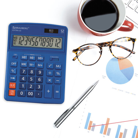 Настольный калькулятор BRAUBERG EXTRA-12-BU. Большой дисплей с увеличенным углом обзора, устойчивый корпус и клавиатура с цветной дифференциацией для эффективной работы с максимальным комфортом.