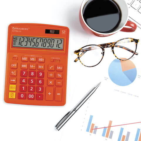 Калькулятор настольный BRAUBERG EXTRA-12-RG (206x155 мм), 12 разрядов, двойное питание, ОРАНЖЕВЫЙ, 250485
